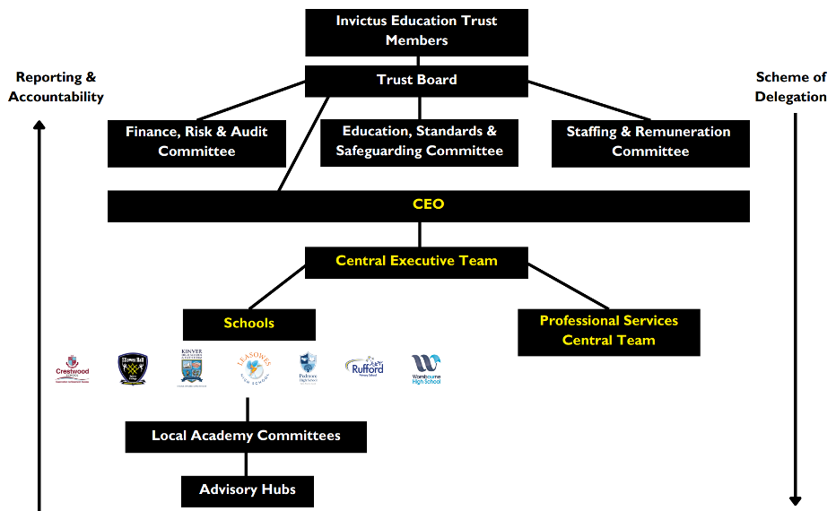 Our governance framework ensures transparency, accountability, and continuous improvement across all our schools. Please see the Invictus Scheme of Delegation for more detail.